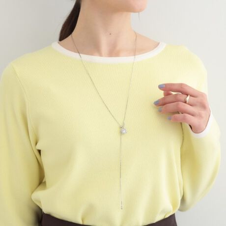 細めのダブルチェーンが縦ラインを描くラリエット風ネックレスです。