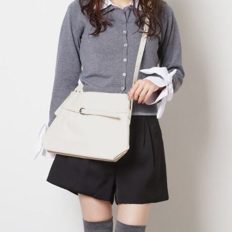 フロントには細ベルトをあしらったさりげないデザインアクセントがあり、シンプルながらも個性を感じさせます。