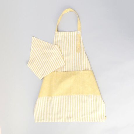 子供っぽくなりすぎない色合いのキッズエプロンと三角巾。