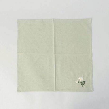 綿(コットン)と麻(リネン)のそれぞれの繊維を織りまぜ、落ち着いたくすみカラーに優しい刺繍フラワーを施したオリジナルキッチンファブリックシリーズ。