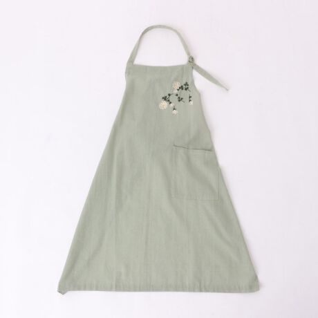 綿(コットン)と麻(リネン)のそれぞれの繊維を織りまぜ、落ち着いたくすみカラーに優しい刺繍フラワーを施したオリジナルキッチンファブリックシリーズ。