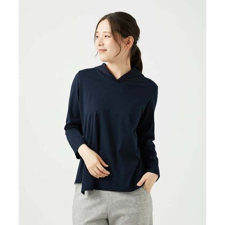 キレイめコットンフーディーカットソー