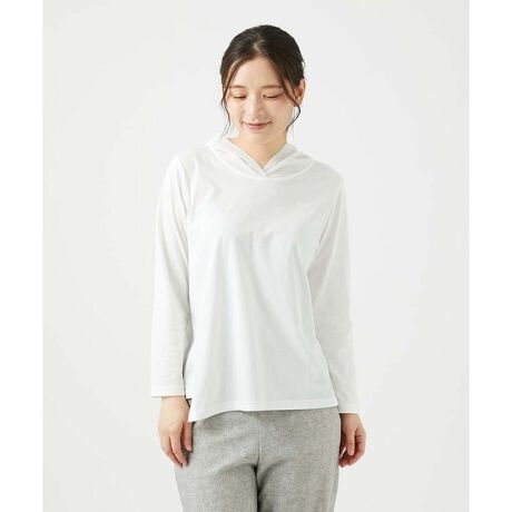 キレイめコットンフーディーカットソー