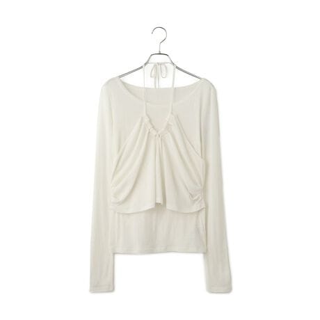 長袖ロンTとホルターネックトップスのレイヤードセットアイテム。