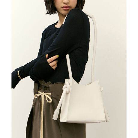 フェイクレザーとハンドルのロープ、異素材のバランスが可愛らしい結びバッグ。