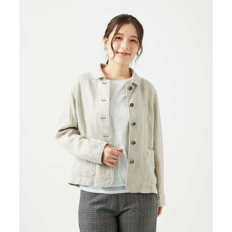 同素材のワイドパンツ[NGLEF17300]と合わせれば、ほどよく力の抜けたエレガントなセットアップスタイルに。デニムやチノパンと合わせれば、デイリーにも取り入れやすく、タウンユースにもおすすめです。ヘリンボーン織りの上品な表情と、さりげない配色のボタンホールがコーディネートのアクセントに。季節を問わず着回しがきき、オン・オフどちらにも活躍してくれる一枚です。