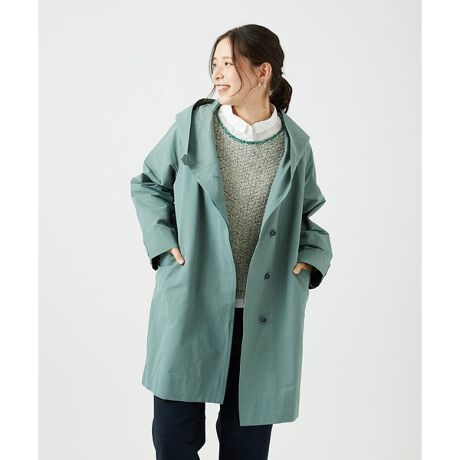 前身頃からつづいたフードデザイン。フードのつづき部分とアームホールから袖下縫い代部分を裏地を使用してパイピング仕上げして丁寧に仕上げました。袖口は、タブ仕様になっているので釦位置を変えることで袖口の変化もお楽しみいただけます。左身頃裏に内ポケット付。