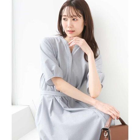 涼しげな印象でさらりとしたサッカーストライプ素材を使用。夏も涼しく着られる素材です。アンダードレス付き。