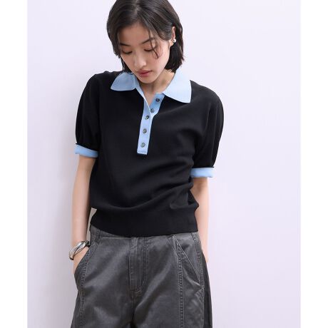 【WEB限定】ハーフスリーブバイカラーポロニット