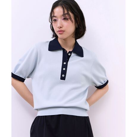 バイカラーが魅力的なポロニットプルオーバー。
