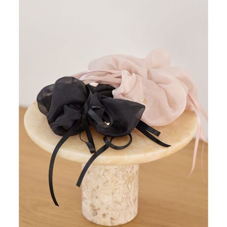 ポニーテールやハーフアップに合わせて、女性らしい後ろ姿に。ワンピースやブラウスと合わせれば、シフォンの透け感とリボンの揺れが引き立つフェミニンな印象に仕上がります。Tシャツなどのカジュアルスタイリングにさっと結ぶだけで、やさしい甘さをプラスしてくれるアイテムです。