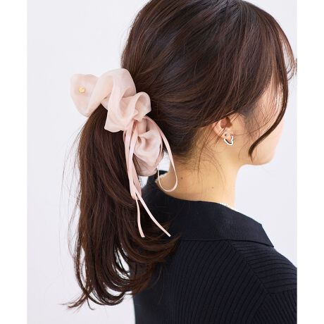 ポニーテールやハーフアップに合わせて、女性らしい後ろ姿に。ワンピースやブラウスと合わせれば、シフォンの透け感とリボンの揺れが引き立つフェミニンな印象に仕上がります。Tシャツなどのカジュアルスタイリングにさっと結ぶだけで、やさしい甘さをプラスしてくれるアイテムです。