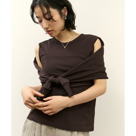 袖は長めに設定しているのでノースリーブで着用し、フロントで結んで着用するのも。