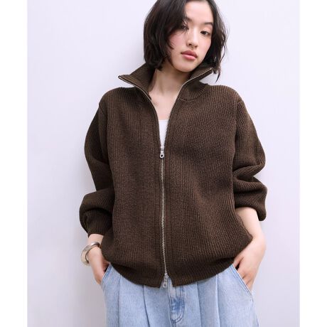 フロントダブルジップのブルゾンライクなカーディガン。