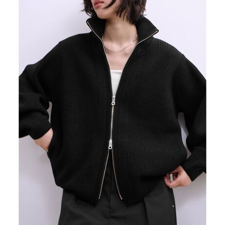 フロントダブルジップのブルゾンライクなカーディガン。