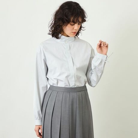 英国出自の名門ファブリックメーカー「THOMAS MASON」の生地を使用したモダンなスタンドカラーシャツ。
