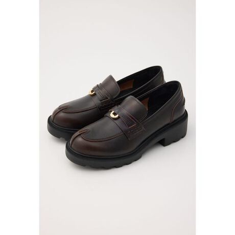 STACCATOで人気と定評のある木型・ソールを採用したローファーにNEWデザインが登場。程よいボリューム感のタンクソールでモードな印象に仕上げ、ユニークな「蹄」をモチーフにした乗せモカデザインと、サドル部分にあしらったさり気ないゴールドのホースシューがアクセントに。クッション性のある軽量ソールで、程よい厚底ながら見た目以上に軽く脚長効果も期待できます。跳ねるような履き心地の最軽量ローファーはシーズンを問わず軽快に履け、今季はヴィンテージ感のある絶妙なブラウンカラーで足元を上品に格上げしてくれるおすすめの一足です。