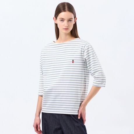 アイコニックなバッキンガムベアがポイントの七分袖バスクボーダーTシャツ。