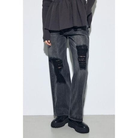 ■AZUL DENIM レースワイドデニム■ポイントトレンドのレース素材を使用したワイドデニム。■ディテールダメージ部分にレースを重ねることで、女性らしさと程よい肌見せを演出。ダメージ部分も横糸を残しているので露出しすぎずに着用できます。メリハリのある加工ですっきりスタイルアップして着用できます。■スタイリング春らしいニットやシンプルなトップスと合わせるのがおすすめです。ワイドシルエットのため、コンパクトなトップスと合わせるとスタイルアップ効果があります。■生地13オンス綿100デニム。L/BLKは横糸も黒のBLACKデニムを使用しておりクラッシュ加工のダメージの糸も黒なので馴染みが良いです。BLUは通常の横糸白のインディゴデニムを使用しています。透け感:なし裏 地:なし伸縮性:なし光沢感:なし[注意事項]※画像の商品はサンプルです。実際の商品と仕様、加工が若干異なる場合があります。※画像の商品は光の照射や角度、お使いのモニター環境により、実物と色味が異なる場合がございます。※着用、お取り扱いの際は、アテンションタグをご確認ください。