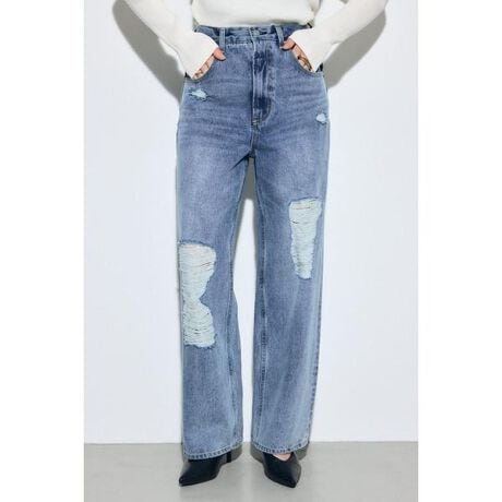 ■AZUL DENIM レースワイドデニム■ポイントトレンドのレース素材を使用したワイドデニム。■ディテールダメージ部分にレースを重ねることで、女性らしさと程よい肌見せを演出。ダメージ部分も横糸を残しているので露出しすぎずに着用できます。メリハリのある加工ですっきりスタイルアップして着用できます。■スタイリング春らしいニットやシンプルなトップスと合わせるのがおすすめです。ワイドシルエットのため、コンパクトなトップスと合わせるとスタイルアップ効果があります。■生地13オンス綿100デニム。L/BLKは横糸も黒のBLACKデニムを使用しておりクラッシュ加工のダメージの糸も黒なので馴染みが良いです。BLUは通常の横糸白のインディゴデニムを使用しています。透け感:なし裏 地:なし伸縮性:なし光沢感:なし[注意事項]※画像の商品はサンプルです。実際の商品と仕様、加工が若干異なる場合があります。※画像の商品は光の照射や角度、お使いのモニター環境により、実物と色味が異なる場合がございます。※着用、お取り扱いの際は、アテンションタグをご確認ください。