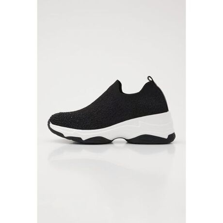 [型番:350JS149-9145]【STACCATO定番スリッポン】表情感と凹凸感のある立体的なMIXニット地に、つま先部分にはグラデーション風に大小のオーロラストーンを装飾。フィット感のあるハイバンプデザイン&安定感ある程よい高さのスニーカーソールは、ボリューム過ぎないのに脚長効果も期待大。シーズンレスでデイリーユースに大活躍してくれます。