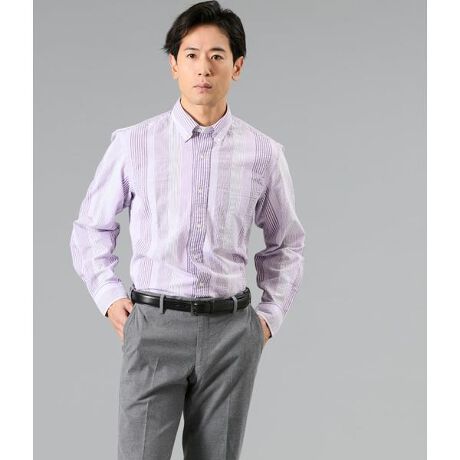 濃淡のあるカラー配置によって、クレイジーパターンのように見えるマルチストライプが特徴。程よくカジュアルなショートボタンダウンカラーで、1枚着はもちろん、Tシャツの上に羽織るスタイルもおすすめです。スラックスできれいめに、チノやカーゴパンツでリラックス感のある着こなしにも対応します。