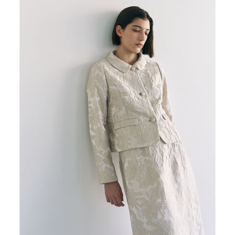 立体感のあるフラワー模様の織柄が、装いを優雅にクラスアップする「BOURGE」のスーツ。ジャケットとスカートのバランスもよく、春らしい軽やかな質感ながら、裏地を施すことで端正なシルエットを美しく保ち、大人の気品漂う佇まいに仕上げました。サイドホック&ファスナー仕様が腰回りをすっきりと見せ、袖口のスリットを折り返すアレンジも自在。後ろゴム仕様のウエストや右側のみに備えたポケットなど、快適性と美しさを両立した一着です。