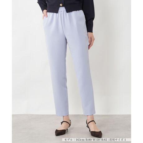 春のスタイリングを軽やかに彩る、洗練された美しいシルエットのストレッチスリムパンツ。やや薄手で清涼感のある生地に優れた伸縮性を持たせることで、スマートな見た目とストレスフリーな足捌きを両立しました。ウエストは総ゴム仕様のため、長時間の着用でも快適な穿き心地をキープ。レッグラインを美しく見せつつ、動きやすさも兼備した、デイリーからオフィスまで幅広いシーンで活躍する一本です。