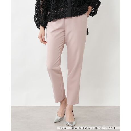 春のスタイリングを軽やかに彩る、洗練された美しいシルエットのストレッチスリムパンツ。やや薄手で清涼感のある生地に優れた伸縮性を持たせることで、スマートな見た目とストレスフリーな足捌きを両立しました。ウエストは総ゴム仕様のため、長時間の着用でも快適な穿き心地をキープ。レッグラインを美しく見せつつ、動きやすさも兼備した、デイリーからオフィスまで幅広いシーンで活躍する一本です。