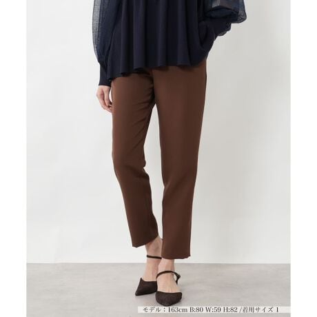 春のスタイリングを軽やかに彩る、洗練された美しいシルエットのストレッチスリムパンツ。やや薄手で清涼感のある生地に優れた伸縮性を持たせることで、スマートな見た目とストレスフリーな足捌きを両立しました。ウエストは総ゴム仕様のため、長時間の着用でも快適な穿き心地をキープ。レッグラインを美しく見せつつ、動きやすさも兼備した、デイリーからオフィスまで幅広いシーンで活躍する一本です。