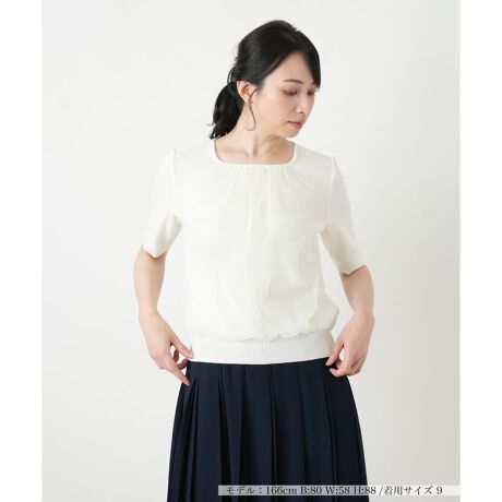 フロントに重ねた繊細なチュールが柔らかなニュアンスを添える、「BOURGE」のニットトップス。広めに開いたネックラインがデコルテを美しく引き立て、五分袖のシルエットが手元にエレガントな抜け感を演出します。やや薄手ながらしなやかな伸縮性を備えているため、身体に優しくフィットしつつストレスフリーな着心地を実現。裾のリブが全体を端正にまとめ、一枚着でもインナーでも品良く映える洗練された佇まいに仕上げました。