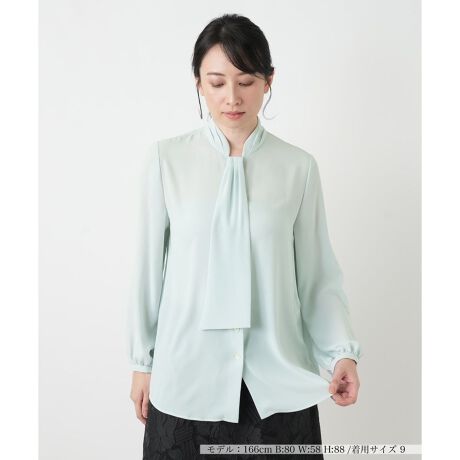 柔らかなとろみのあるしなやかな風合いの生地が、ストレスフリーな着心地を叶えるボウタイブラウス。無駄な装飾を省いてクリーンで上質感のある佇まいに仕上げました。首元には着脱をスムーズにするスナップボタンを配し、機能性と美しさを両立。取り外せないタイプのボウタイは、結ぶだけで顔周りに華やかなアクセントを添え、洗練された大人の表情を演出。一枚着としてはもちろん、ジャケットのインナーとしても装いを引き立てるアイテムです。