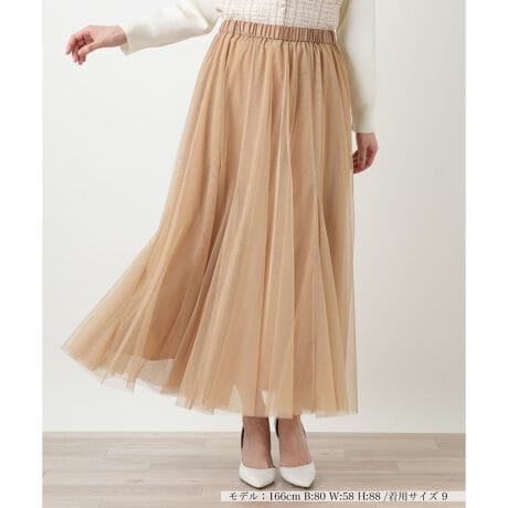 軽やかな透け感が春の着こなしに華やかなニュアンスを添える、ギャザーロングスカート。繊細なチュールを贅沢に使用し、優雅に揺れるボリューム感のあるシルエットに仕上げました。薄手で軽快な質感ながら、裏地を施すことで安心感のある穿き心地を実現。ウエストは総ゴム仕様でストレスフリーなフィットを叶え、裏地にも伸縮性を持たせることで快適な足捌きにもこだわりました。カジュアルなカットソーからきれいめなブラウスまで幅広く調和する、気品ある一枚です。