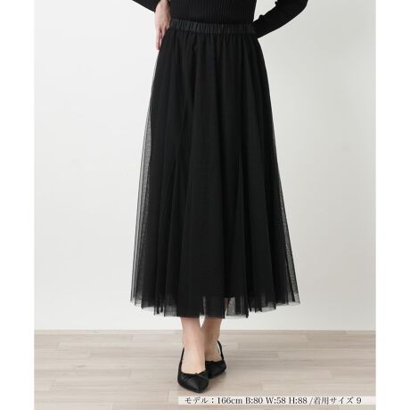 軽やかな透け感が春の着こなしに華やかなニュアンスを添える、ギャザーロングスカート。繊細なチュールを贅沢に使用し、優雅に揺れるボリューム感のあるシルエットに仕上げました。薄手で軽快な質感ながら、裏地を施すことで安心感のある穿き心地を実現。ウエストは総ゴム仕様でストレスフリーなフィットを叶え、裏地にも伸縮性を持たせることで快適な足捌きにもこだわりました。カジュアルなカットソーからきれいめなブラウスまで幅広く調和する、気品ある一枚です。