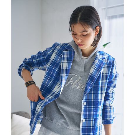 爽やかなブルーのチェック柄が目を惹く、軽やかなテーラードジャケット。