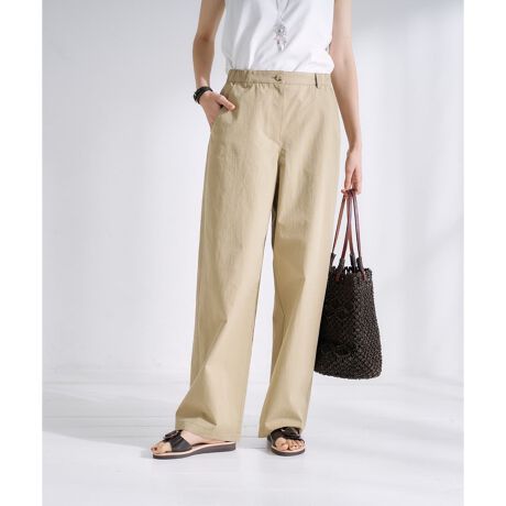 コットン100%の近江晒(おうみざらし)という生地加工技術を用い、自然なシボ感と柔らかな風合いが魅力。シンプルなトップスと合わせるだけで洗練された大人のカジュアルスタイルが完成します。