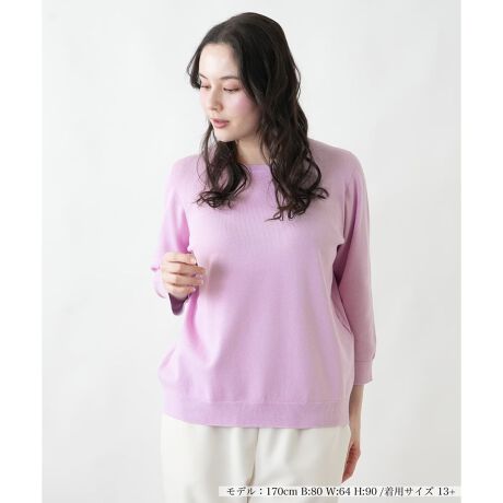 ジャケットなどのインナーに最適な、七分袖のニットインナーです。すっきりとしたノーカラーの丸首デザインは、どんなネックラインのアウターとも相性が良く、デコルテを美しく見せてくれます。手元に軽やかな抜け感を演出する七分袖もポイント。春先のコーディネートのベースとして、一枚持っていると大変重宝するアイテムです。