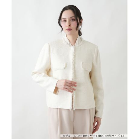 上品な丸首のノーカラーデザインが、女性らしく柔らかな雰囲気を演出するジャケット。シンプルな無地のデザインで、合わせるインナーやボトムスを選ばず、幅広いコーディネートに着回せます。カーディガン感覚で気軽に羽織れ、きちんと感もプラスできる便利な一着。新しい自分を見つけるきっかけになるような、洗練されたアイテムです。