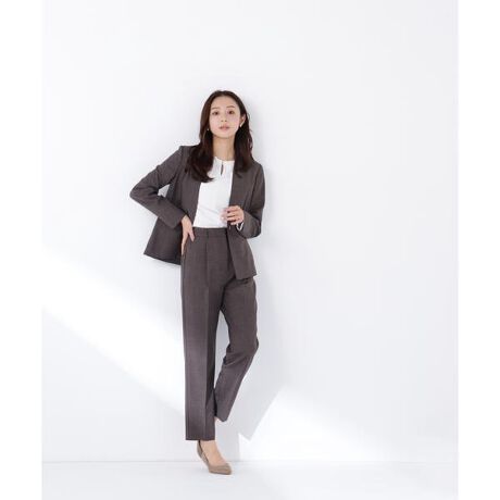 フロントのワンタックで腰まわりに程よいゆとりを持たせつつ、センタープレスで脚のラインをすっきりと見せてくれるパンツ。後ろウエストはゴム仕様で、きちんと見えと快適なはき心地を両立。オンオフ問わず活躍できるデザインです。同素材のジャケットとのスーツスタイルもおすすめです。<素材>リネンライクな風合いとメランジ感が魅力の素材を使用しています。<詳細>仕様・前ファスナー裏地・なし透け感・なし / 光沢・なし / 伸縮性・なし生地の厚さ・普通<シリーズ>■ストレートパンツ[品番:0176130303] ■ノーカラージャケット[品番:0176150302] ■ダブルボタンジャケット[品番:0176150303] ※モデルの着用画像の場合、光の当たり具合により、実際の色味と異なって見えることがございます。色味は、商品単体の画像をご参照ください。