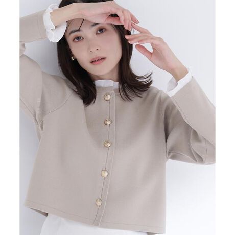 襟ぐりとカフスに取り外し可能なフリルをあしらったニットカーディガン。フリルを外せばシンプルに着用でき、印象を変えるアレンジが楽しめます。しっかりとした風合いでジャケット感覚で着用可能。コンパクトな着丈でバランスが取りやすく、上品に着ていただけます。<素材>しっかりとした風合いのニットです。<詳細>仕様・前ボタン裏地・なし透け感・なし / 光沢・なし / 伸縮性・あり生地の厚さ・普通 ※モデルの着用画像の場合、光の当たり具合により、実際の色味と異なって見えることがございます。色味は、商品単体の画像をご参照ください。