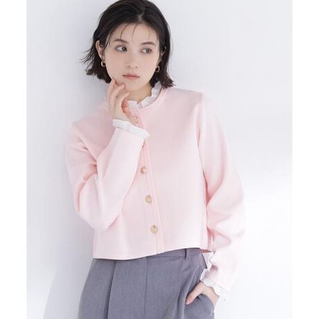 襟ぐりとカフスに取り外し可能なフリルをあしらったニットカーディガン。フリルを外せばシンプルに着用でき、印象を変えるアレンジが楽しめます。しっかりとした風合いでジャケット感覚で着用可能。コンパクトな着丈でバランスが取りやすく、上品に着ていただけます。<素材>しっかりとした風合いのニットです。<詳細>仕様・前ボタン裏地・なし透け感・なし / 光沢・なし / 伸縮性・あり生地の厚さ・普通 ※モデルの着用画像の場合、光の当たり具合により、実際の色味と異なって見えることがございます。色味は、商品単体の画像をご参照ください。