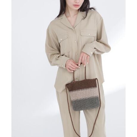 トライカラーのメタリックヤーンをボーダー状に配したトートバッグ。ニュアンシーな配色で、コーディネートに合わせやすいシルバーベースとブロンズべーズの2色展開です。手持ちできる短いハンドルと肩掛けできるロングショルダー付き。デイリーはもちろん、オケージョンやパーティーシーンにも活躍してくれます。※モデルの着用画像の場合、光の当たり具合により、実際の色味と異なって見えることがございます。色味は、商品単体の画像をご参照ください。