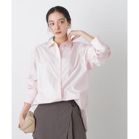 程良くオーバーなシルエットが今の気分にフィットするベーシックシャツ。高密度でハリがありつつ、程よく柔らかさと軽さも備えたクリーンな印象の素材で仕立てた一着。前立ての裏側には隠し釦を施し、裾のホールに留めることで、フロントをタックインしたようなバランスにアレンジも可能。前だけをふわっと短丈に見せたり、着こなしの幅が広がる2way仕様です。