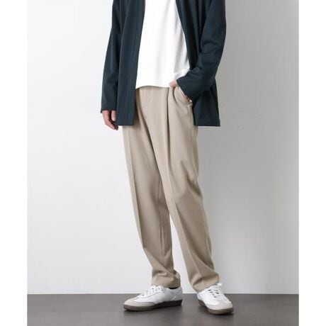 上品な風合いでオンオフ問わず活躍するキレイ目スラックス。裾に向かってテーパードがかかったシルエットとタック入りのデザインで、キレイなシルエットのリラックスパンツに仕上げた一本です。