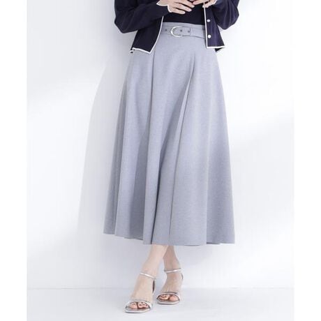 ニュアンスのあるカーブメタルバックルがポイントのベルテッドスカート。ウエストから裾にかけて広がるタックフレアシルエットで、ウエストマークしながら、キレイめな印象で着ていただけます。後ろウエストはゴム仕様でストレスフリーなはき心地。オフィスシーンにも活躍してくれます。便利なスラッシュポケット付き。<素材>さらっとしたタッチの合繊素材を使用。糸色を配色にしたメランジ調の見え方がポイントの素材感です。<詳細>仕様・後ろファスナー裏地・あり透け感・なし / 光沢・なし / 伸縮性・なし生地の厚さ・普通※モデルの着用画像の場合、光の当たり具合により、実際の色味と異なって見えることがございます。色味は、商品単体の画像をご参照ください。