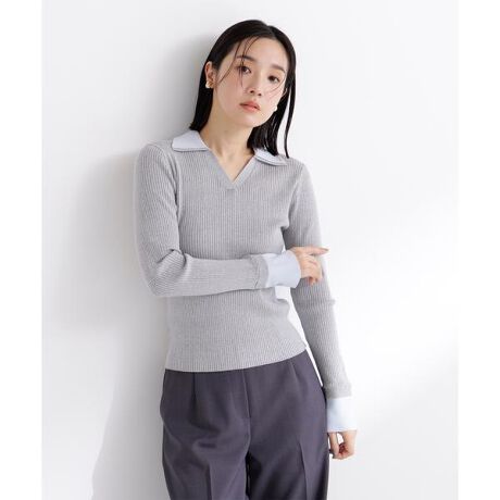 今年トレンドのダブルカラー(襟)のデザインを配色で効かせた、印象的なリブニットプルオーバー。ダブルカラーで首元をすっきりと見せるスキッパーデザインです。袖口はカフスをレイヤードしたような切り替えと配色をプラス。オフィスシーンからデイリーまで着回せる配色とレイヤード感のあるデザインです。<素材>ソフトなタッチのキレイな目面の糸を使用し、リブ編みで編み立てています。<詳細>仕様・開閉なし裏地・なし透け感・なし / 光沢・なし / 伸縮性・あり生地の厚さ・普通※モデルの着用画像の場合、光の当たり具合により、実際の色味と異なって見えることがございます。色味は、商品単体の画像をご参照ください。