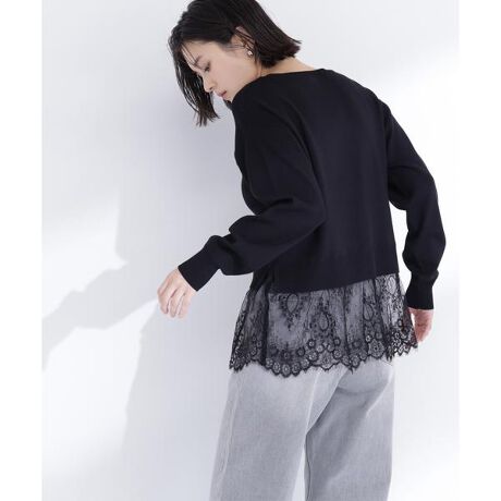 レースインナーをドッキングしたデザインで、一枚でレイヤード風の着こなしが叶うニット。トレンドのレースを取り入れ、旬な印象に見せながらスタイリングが映える一枚です。<素材>伸縮性のあるハイゲージニットです。<詳細>仕様・開閉なし裏地・なし透け感・なし / 光沢・なし / 伸縮性・あり生地の厚さ・普通 ※モデルの着用画像の場合、光の当たり具合により、実際の色味と異なって見えることがございます。色味は、商品単体の画像をご参照ください。