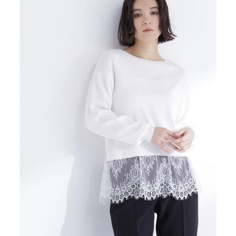 レースインナーをドッキングしたデザインで、一枚でレイヤード風の着こなしが叶うニット。トレンドのレースを取り入れ、旬な印象に見せながらスタイリングが映える一枚です。<素材>伸縮性のあるハイゲージニットです。<詳細>仕様・開閉なし裏地・なし透け感・なし / 光沢・なし / 伸縮性・あり生地の厚さ・普通 ※モデルの着用画像の場合、光の当たり具合により、実際の色味と異なって見えることがございます。色味は、商品単体の画像をご参照ください。