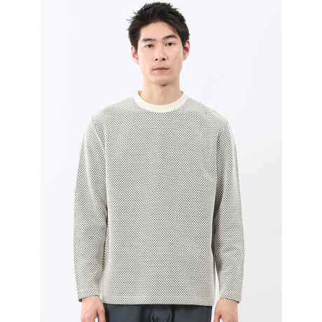 シンプル過ぎない存在感のあるクルーネックの長袖Tシャツです。無地とは一線を画するバーズアイの地柄で着映えするルックスに仕上げています。ネック部分は程良い伸縮性のあるリブ仕様。一枚で着るのはもちろん、ジャケットやシャツ、ジレベストのインナーとしても便利なアイテムです。