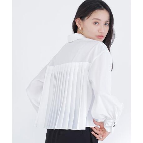 前はシンプルで、後ろはバックプリーツを効かせた、前後で表情の変わるデザインシャツ。ショート丈でアウトスタイルが様になり、デザイン性もあるのでコーディネートを新鮮に見せてくれます。縦ラインを意識したマニッシュなパンツやナロースカートとのスタイリングがおすすめです。<素材>程よくハリ感のある合繊ブロード素材を使用しています。<詳細>仕様・前ボタン裏地・なし透け感・なし / 光沢・なし / 伸縮性・なし生地の厚さ・普通※モデルの着用画像の場合、光の当たり具合により、実際の色味と異なって見えることがございます。色味は、商品単体の画像をご参照ください。